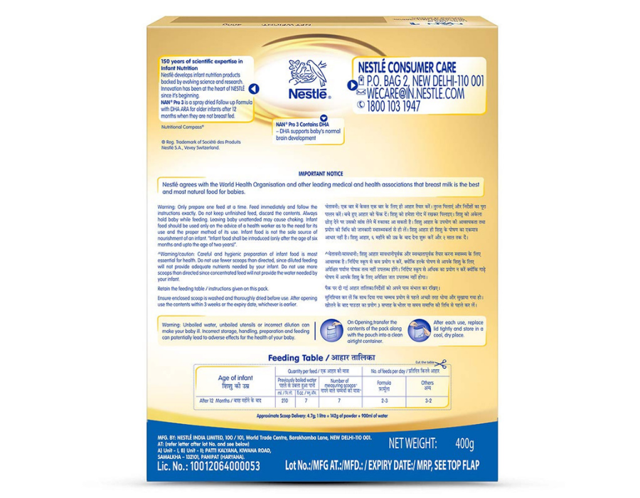 Nestle Nan Pro 1 Infant Formula Refill, 400 gm