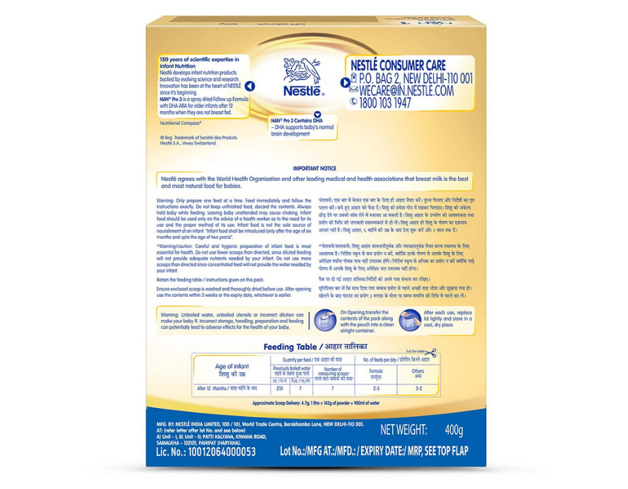 Nestle Nan Pro 3 Follow Up Formula Refill, 400 gm